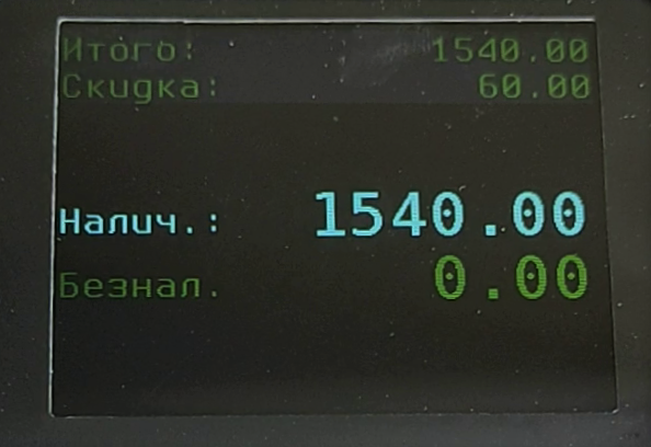 - нажмите кнопку ВВОД, чтобы провести оплату наличными;