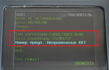 - кнопкой [режим] откройте форму для заполнения реквизитов чека коррекции;