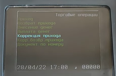 Чтобы сделать чек коррекции:- включите кассовый аппарат и дождитесь, когда на экране появится дата и время;