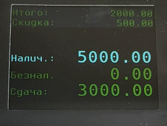 - введите сумму, которую дал покупатель (если оплата наличными);