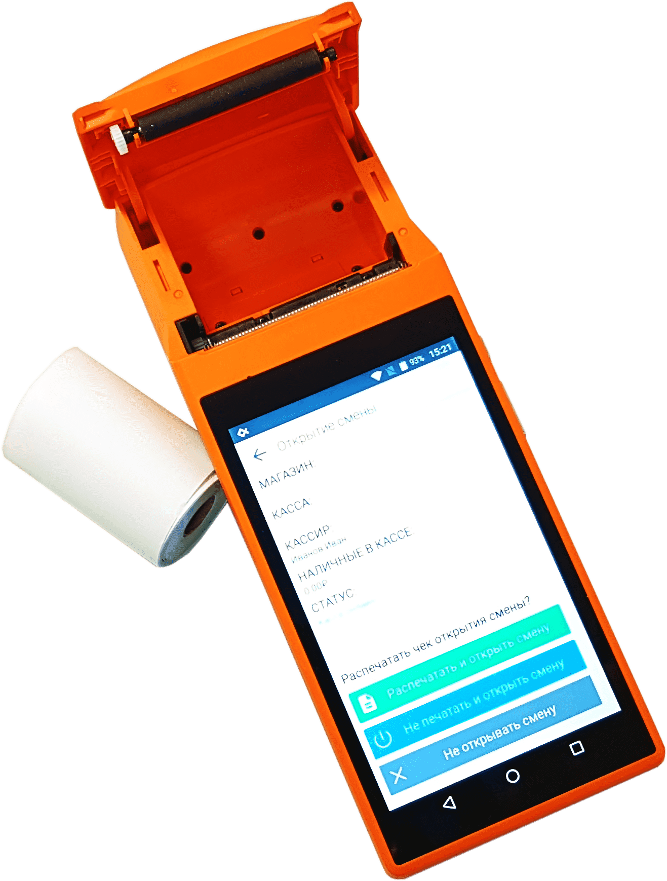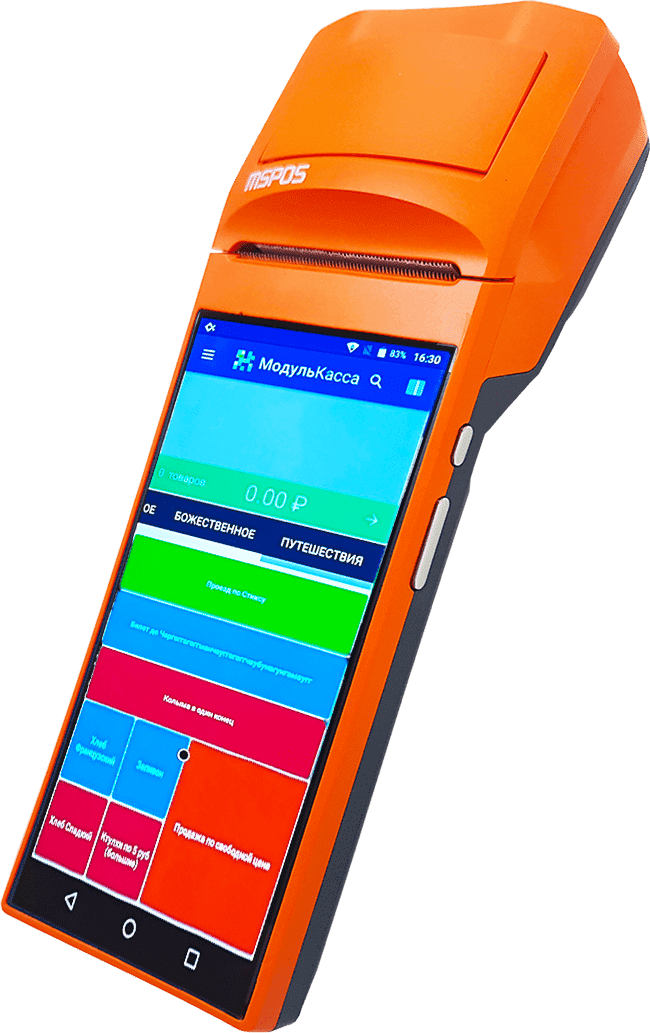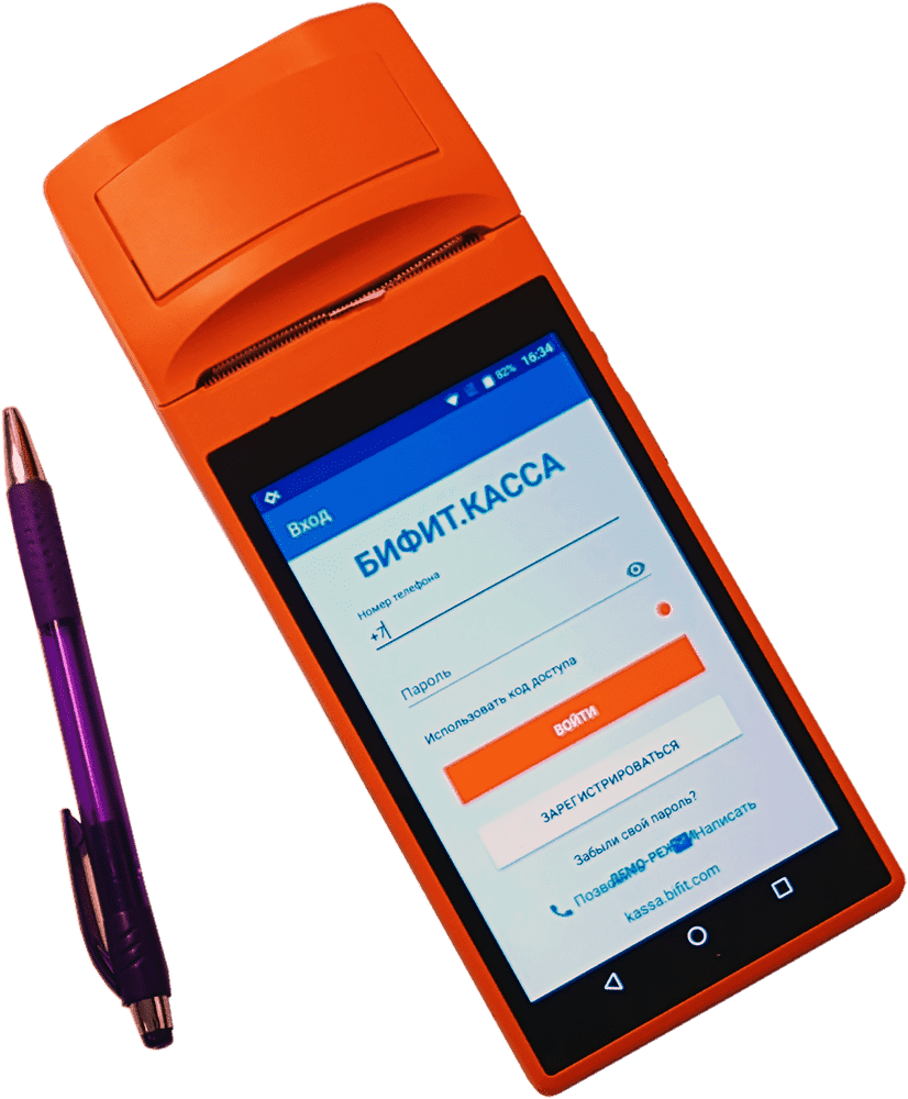 Мобильный кассовый терминал для курьеров оранжевого цвета (за цвет и получила одно из своих прозвищ), по сути является переносной POS-системой. Встроенный сканер штрих-кодов позволяет быстро внести информацию о товаре в чек.