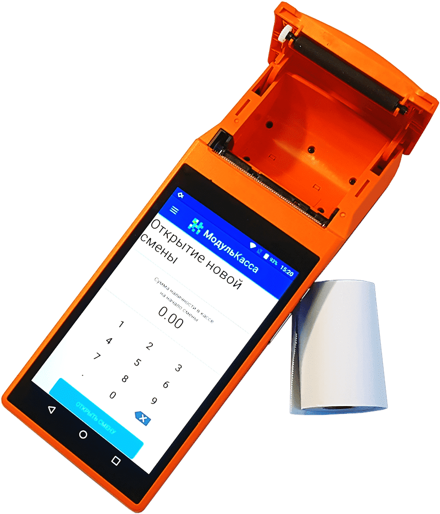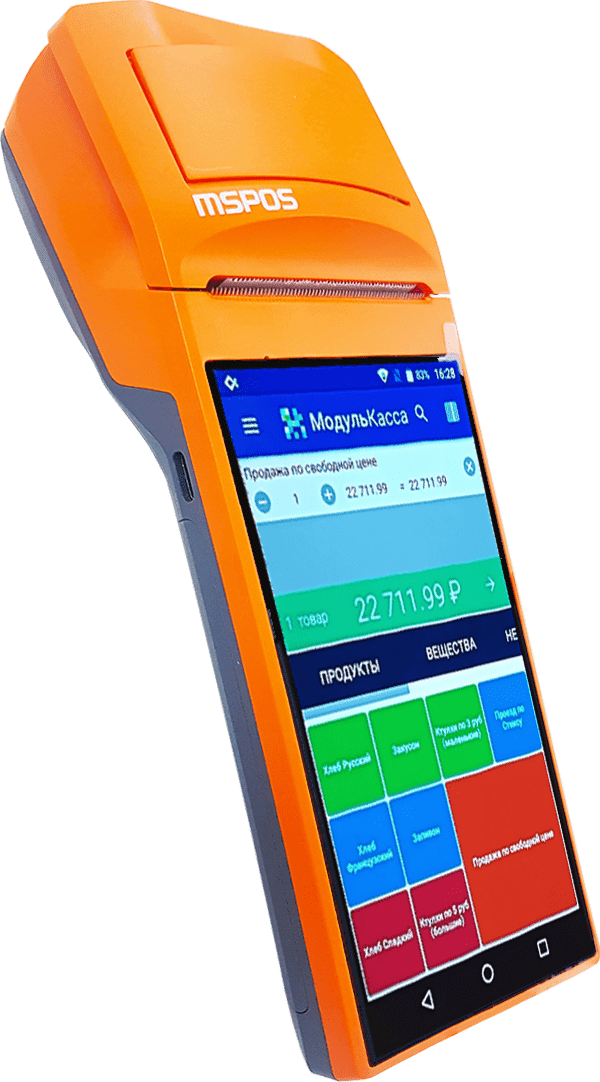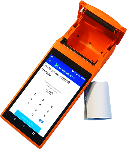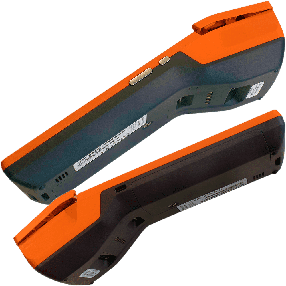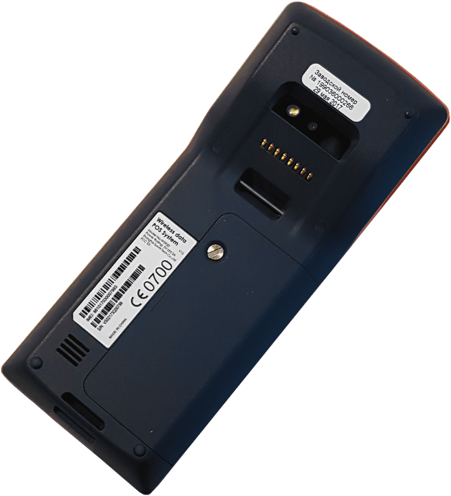Мобильный кассовый терминал для курьеров оранжевого цвета (за цвет и получила одно из своих прозвищ), по сути является переносной POS-системой. Встроенный сканер штрих-кодов позволяет быстро внести информацию о товаре в чек.