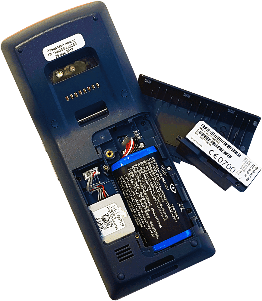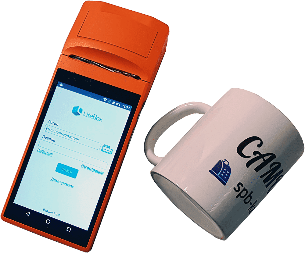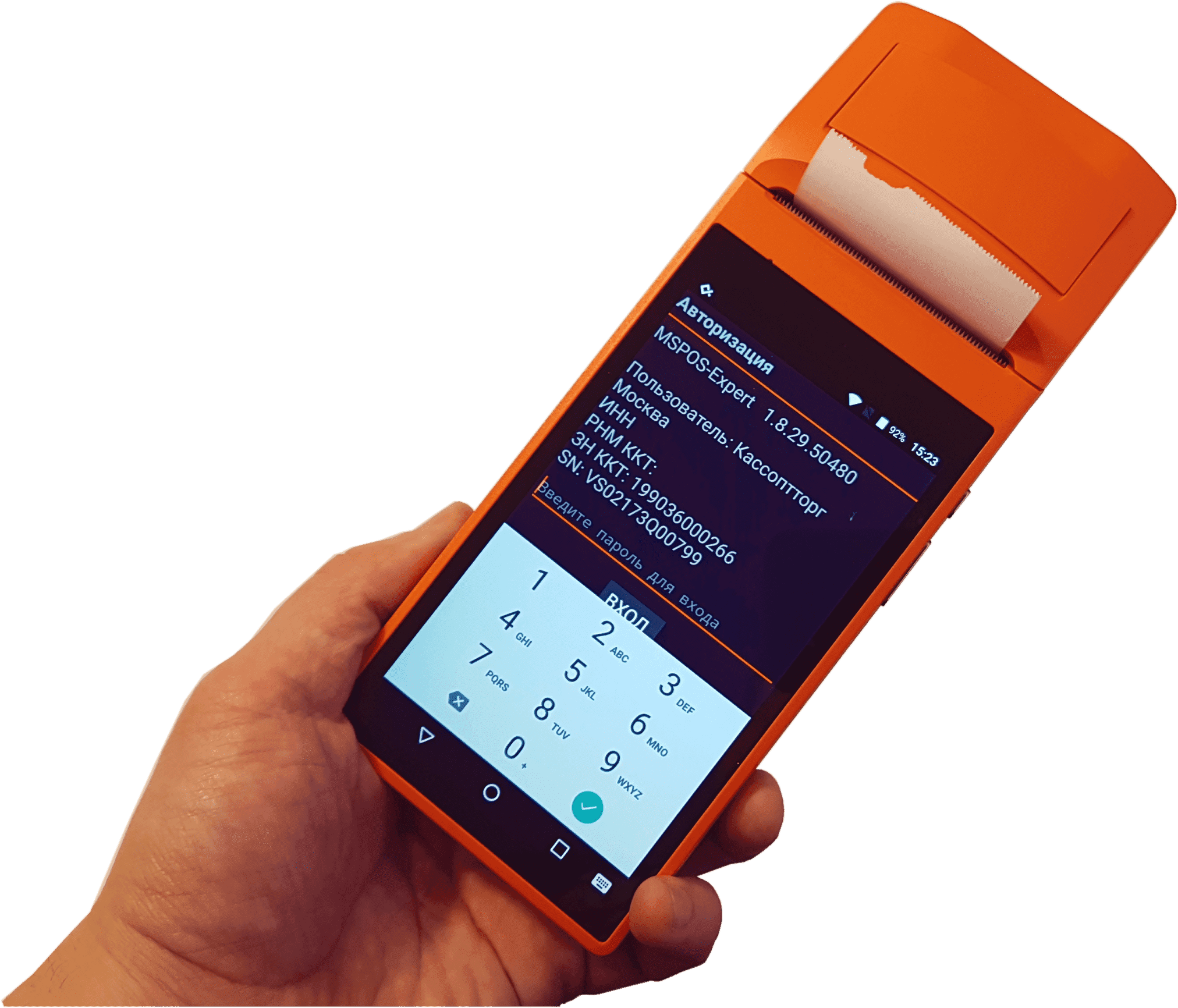 Мобильный кассовый терминал для курьеров оранжевого цвета (за цвет и получила одно из своих прозвищ), по сути является переносной POS-системой. Встроенный сканер штрих-кодов позволяет быстро внести информацию о товаре в чек.