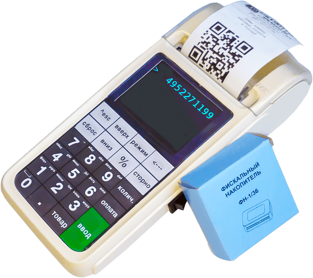 Компактный кассовый аппарат с передачей данных в налоговую под ФЗ-54 со встроенным фискальным накопителем на 36 месяцев.