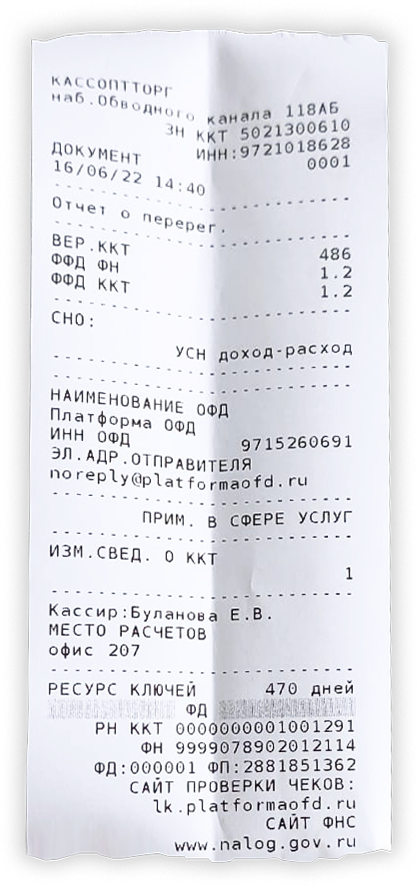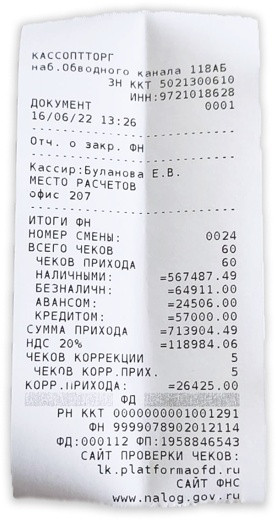 • касса распечатает отчёт о закрытии фискального накопителя (чек нужно сохранить):