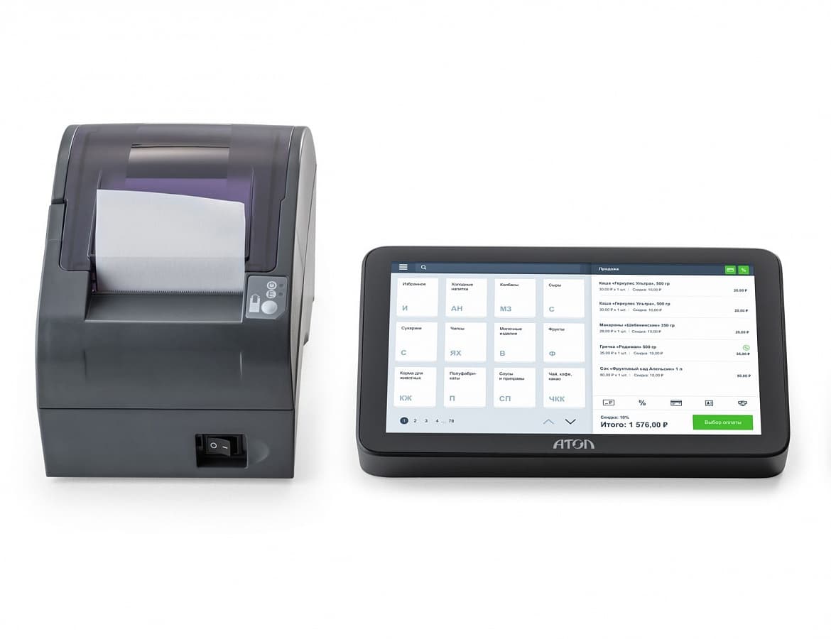 К POS-системе АТОЛ Strike Core можно подключить любое торговое оборудование. Однако, все что требуется, уже идет в комплекте: терминал АТОЛ Strike; фискальный регистратор АТОЛ 50Ф с узким чеком; ПО Frontol xPOS. Система способна принимать любые виды оплат.