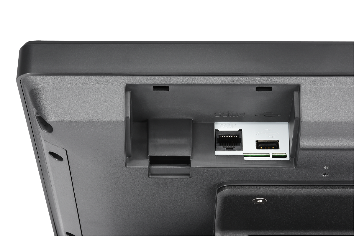 Множество интерфейсных портов в верхней части позволяют подключить все необходимое оборудование и интегрировать терминал в торгово-кассовую систему.