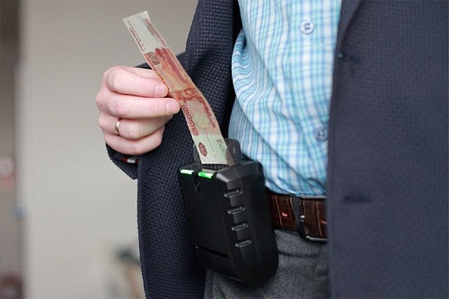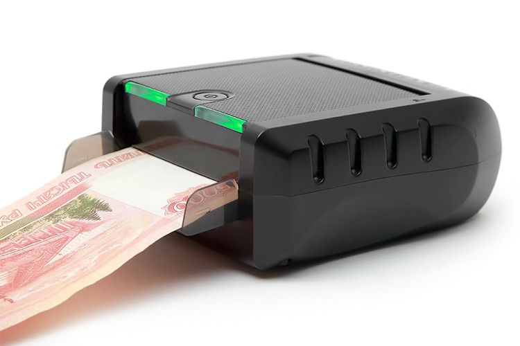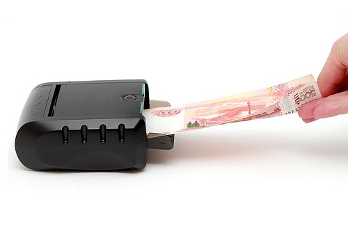 Переносной автоматический детектор банкнот Pro Moniron Mobile с индикатором, который светится зеленым(банкнота настоящая) или красным(банкнота сомнительная) цветом. Имеется разъем USB для связи с компьютером и подзарядки. Это компактное устройство проверяет до 130 купюр в минуту.