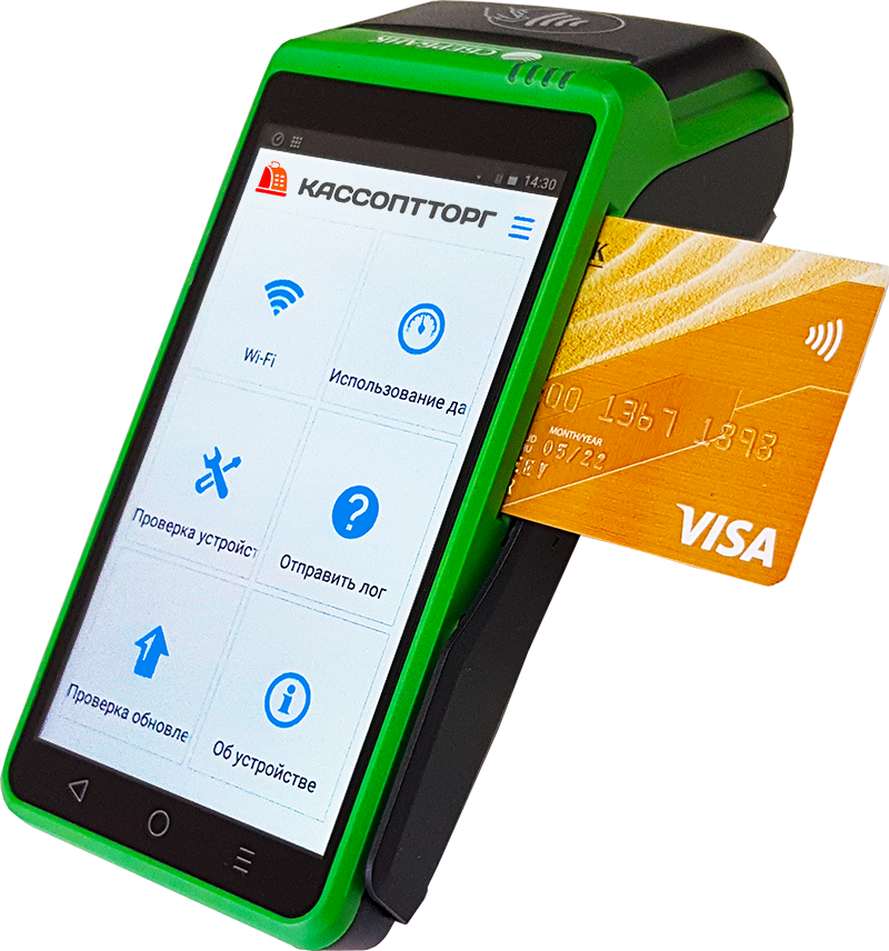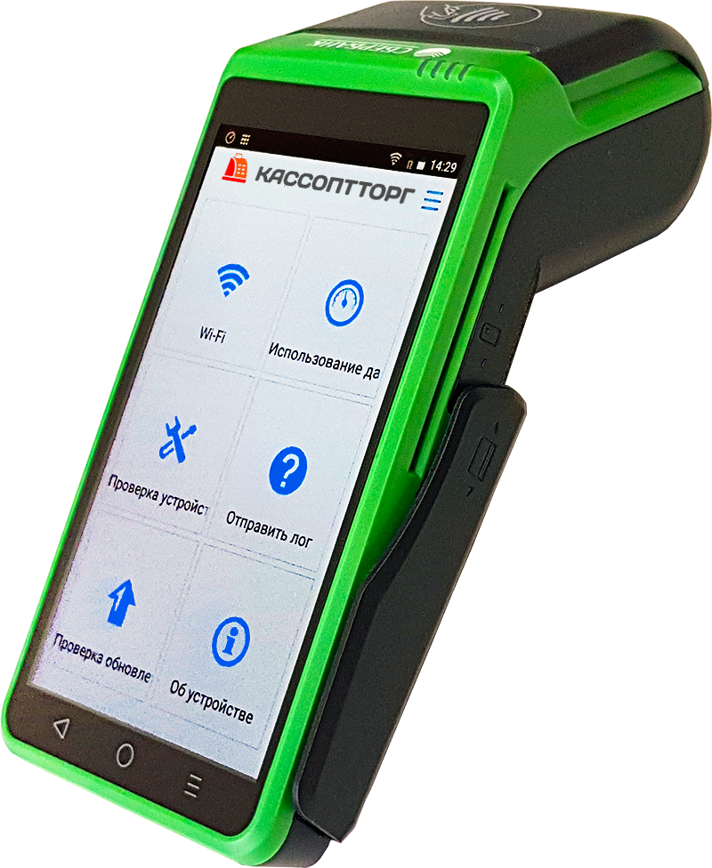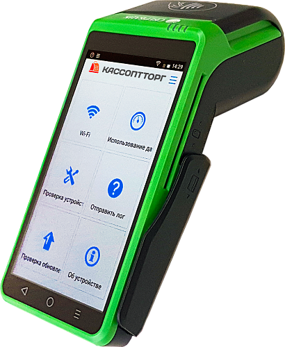 Онлайн кассовый аппараат со встроенным банковским терминалом оплат - эквайрингом. Имеет встроенную камеру для считывания штрих-кодов. Интегрируется с бесплатно кассовой программой Бифит-Касса.