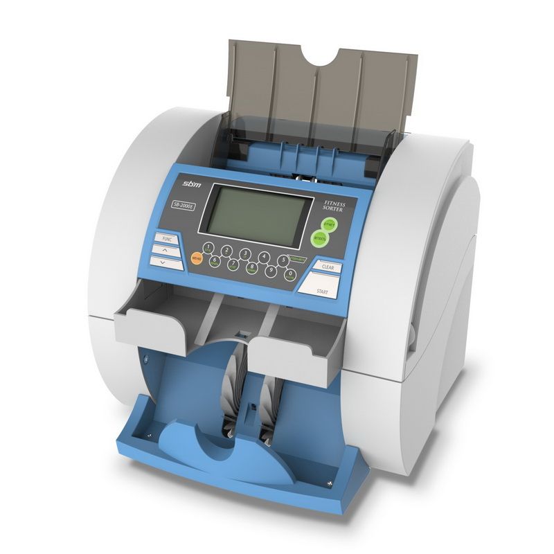 Современный и многофункциональный счетчик банкнот SBM SB-2000Е способен пересчитать до 1200 купюр в минуту. Загрузочный карман вмещает до 1000 банкнот, приемный - 200, отбраковочный - 100. Одновременно может обрабатывать до 10 валют. Устройство соответствует всем требованиям ЦБ РФ. Есть функции определения номинала, сканирования и сравнения серийных номеров. Поддерживается 10 параметров ветхости и возможность изменения их параметров и настройки под различные требования. Кроме всего счетчик проводит контроль целостности, подлинности, сдвоенности и цепочки банкнот. Устройство обладает возможностью сортировки по номиналу, лицу, ориентации и ветхости.