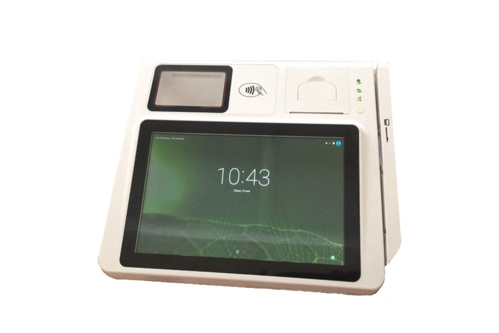 Контрольно-кассовый терминал СПЕКТР-ПС-Ф имеет встроенный эквайринг (возможность приема оплаты банковской картой).Работает от электросети. Есть Bluetooth, Wi-Fi и GSM модули.