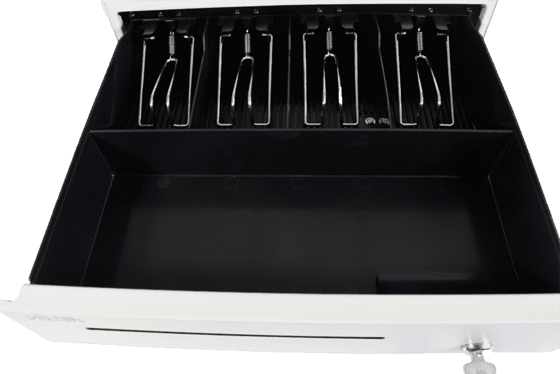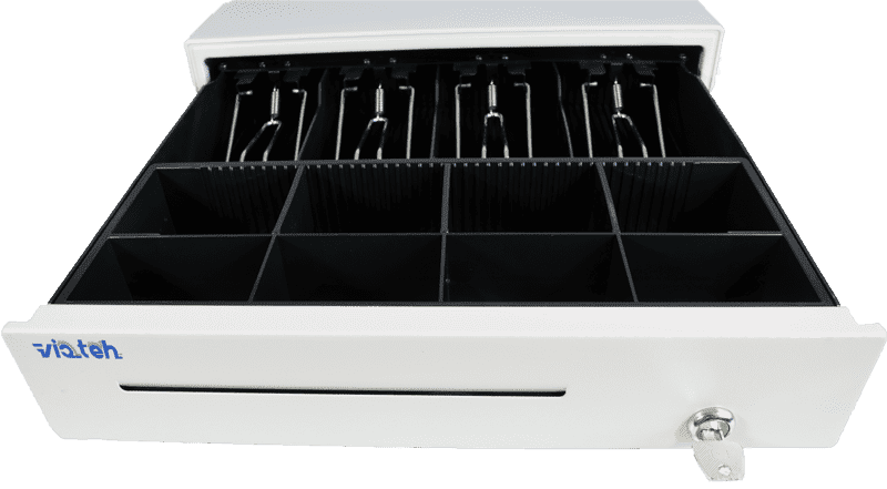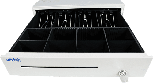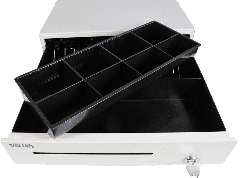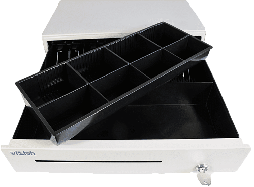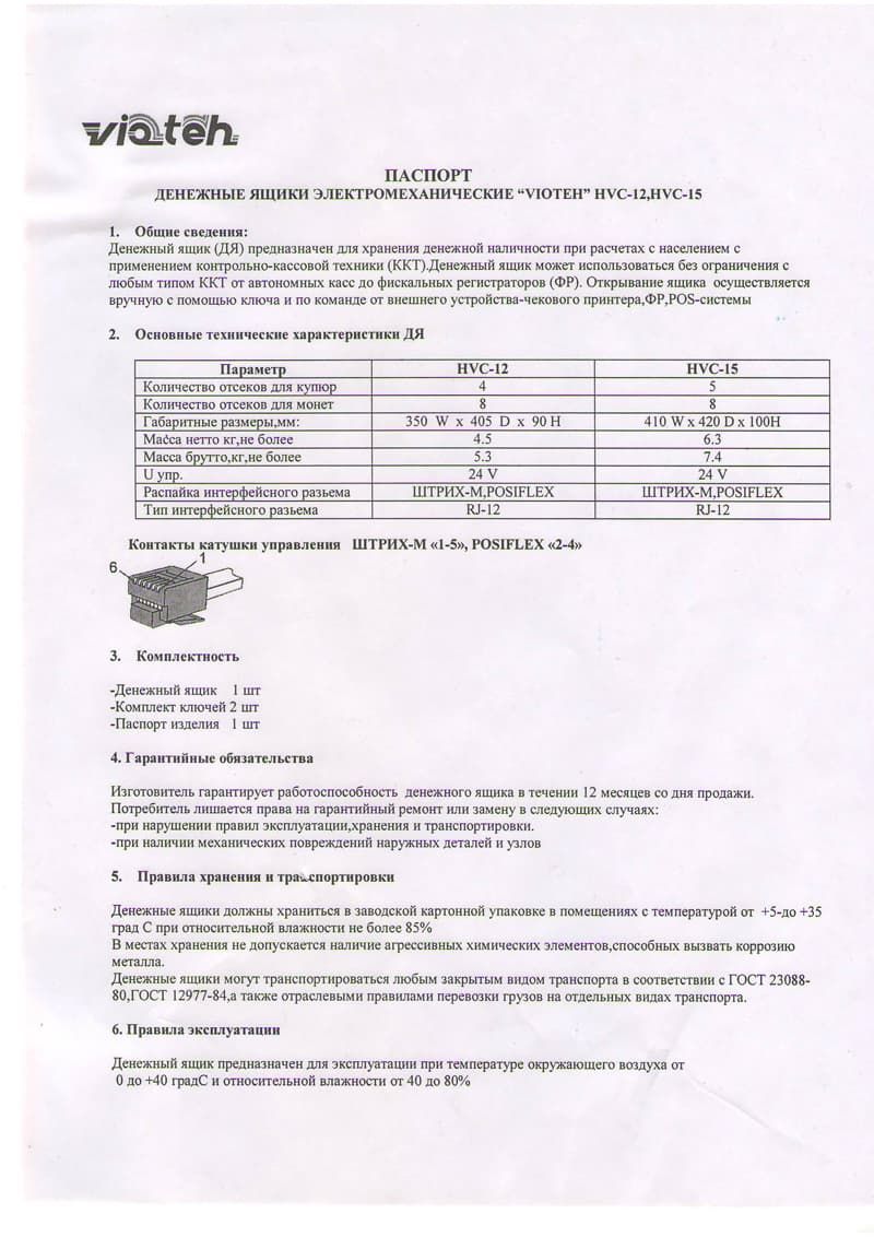 Электромеханический денежный ящик Vioteh HVC-12 белого цвета с интерфейсом RJ12. Имеется 4 отсека для купюр и 8 для монет. Так же есть скрытый отсек для крупной наличности. Денежный ящик Vioteh HVC-12 предназначен для подключения к фискальным регистраторам и кассовым аппаратам и способен открываться в автоматическом режиме при пробитии чеков.