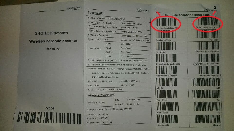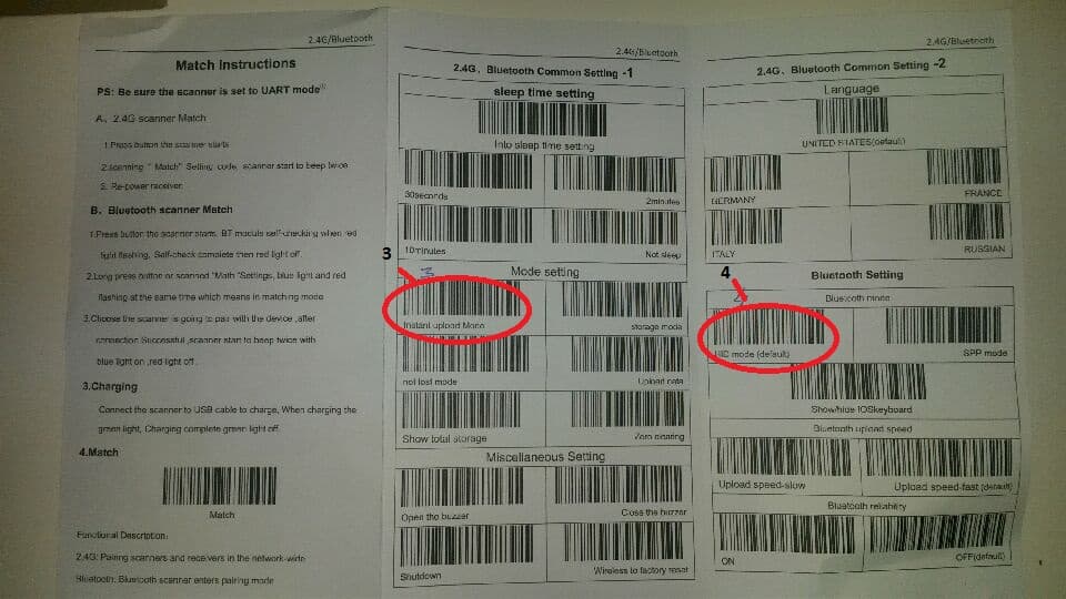 Для настройки корректной работы сканера необходимо в прилагающейся к комплекту инструкции отсканировать несколько штрих-кодов настройки в следующей последовательности: