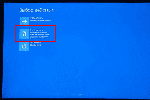 2. При выключении компьютера появится страница параметров выключения компьютера, необходимо выбрать «Диагностика»: