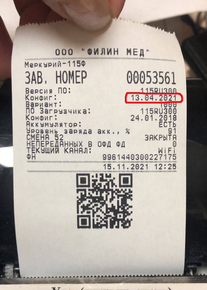 Ошибка часто возникает при версии прошивки кассового аппарата от 13.04.21. Проверьте свою версию прошивки:- нажмите: [РЕЖ] - [РЕЖ] - [•] (клавиша "точка")