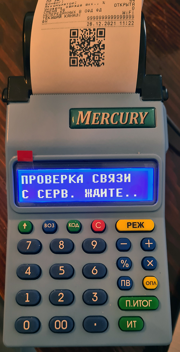 - нажмите: [ИТ] [ИТ] [•] - выйдет чек, на котором в графе НЕПЕРЕДАННЫХ В ОФД ФД должно быть 0, если там другая цифра, то подождите пару минут и еще раз нажмите клавишу [•], если число в этой графе уменьшилось - значит документы передаются - все ОК, если не уменьшается, значит данные не передаются - заново подключитесь к сети.