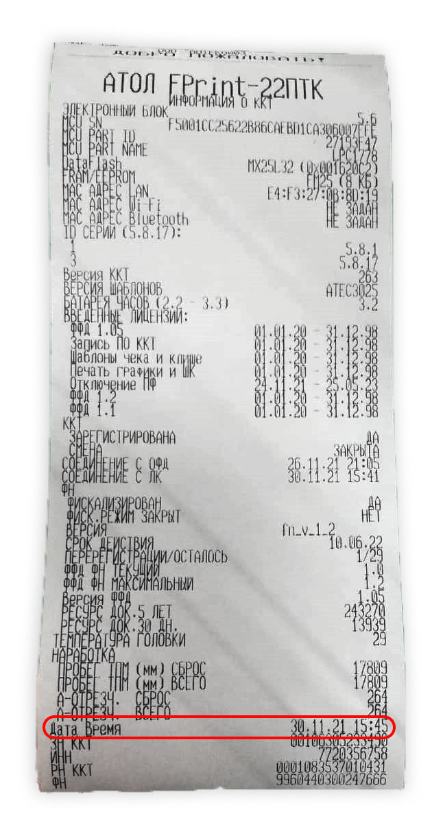 Если срок действия фискального накопителя уже прострочен, то нужно установить дату и время в интервале между последним документом и датой окончания действия ФН, для этого: