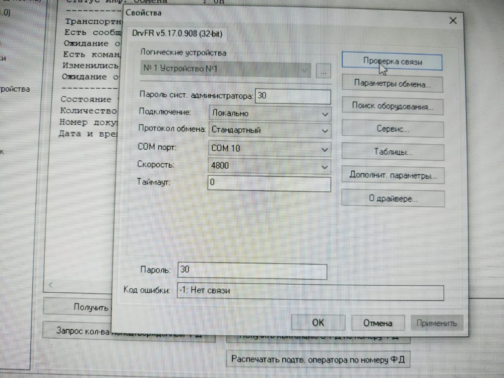 Штрих: Тест драйвера ККТ - Нет связи: когда возникает ошибки, причины возникновения и исправление ошибки.